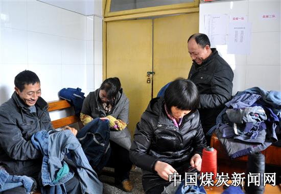 在井口爱心服务站,她们接过职工递来的衣服,仔细检查着破损的工作服,娴熟的双手穿线引针,缝补、裁剪、钉纽扣,赶在他们下井前缝补好,将倾注安全的祝福缝补到每件衣服上,同时叮嘱下井职工:“生命只有一次,每一粒‘安全纽扣’都必须系好,大家要戴好安全帽,系好安全帽带子,安全工作,平安回家。”