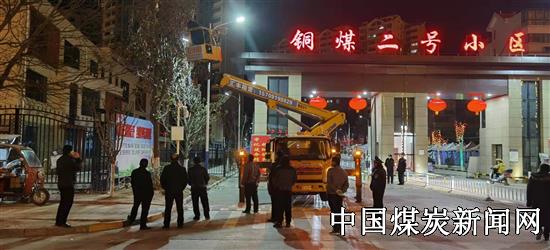 【本网讯】为了让广大住户和职工家属过上一个快乐和谐的新春佳节,2021年1月30日开始,陕西铜川铜煤绣园物业组织工作人员不分昼夜的给小区内的树木们挂上了艳红夺目的小灯笼,喜庆极了。铜煤一、二号两个大门口的树枝上都挂满了。物业工作人员还为商业街和物业大厅门口加装了红旗,夜幕降临,华灯初上,除夕岁未至,庭院已翩翩。