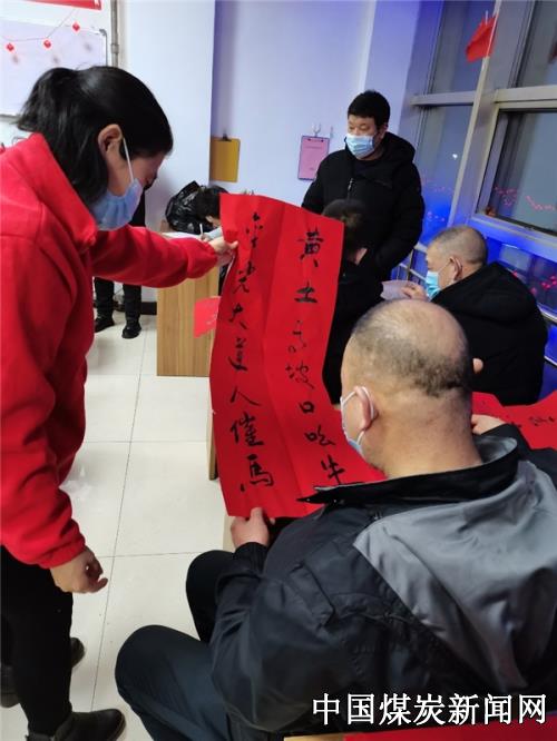 图为职工展示收到的“福”字 “这帮青年女工,可是要样哩!为了协管好安全,绞尽脑汁、花样百出;就像家人一样千叮咛万嘱咐,咱干活可得操心,遵章作业正规操作,不要让她们和咱的家人为咱操心,也得像她们学习,干工作精益求精保证质量啊!”华阳寺家庄公司准备队党支部书记杨君慧这样和职工说。