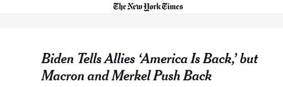 《纽约时报》注意到,马克龙的消极反应很明显,认为欧洲应该脱离美国,寻求“战略自治”,还直言:“欧洲不能过度依赖美国”。默克尔则做出了预见性判断:“我们的利益不会总是一致。”