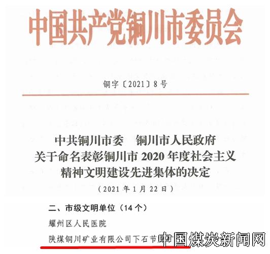 | 铜川矿业公司下石节矿荣登铜川市“市级文明单位”光荣榜 | |||