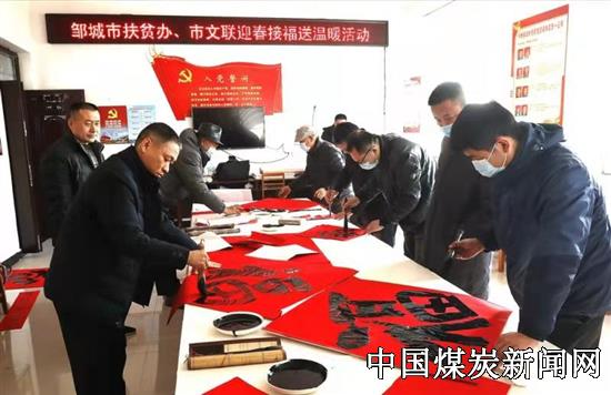 【本网讯】2月2日,山能兖矿儒风文艺志愿服务中心精心组织书法爱好者积极参加邹城市扶贫办、邹城市文联在太平镇中鲍村开展的“迎春接福送温暖”活动。