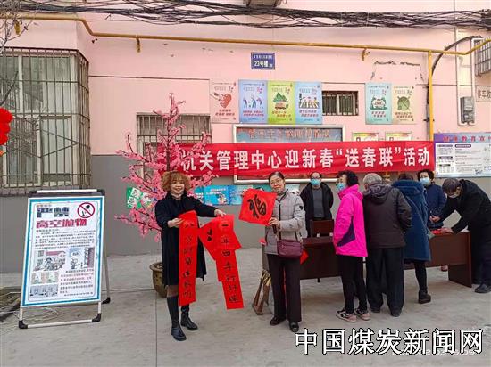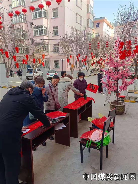 开展小型多样的春节活动,喜迎农历新年。他们精心设计,购置悬挂了灯笼、灯带,布置装扮在矿业机关家属院,串串红灯笼和绚丽的灯带,扮靓了家属区,增添了喜庆年味;开展迎新春“送春联”活动,近日,组织老年大学书法班的学员,在矿业机关家属院现场义务为居民写春联,送春联近两百副,受到居民欢迎。