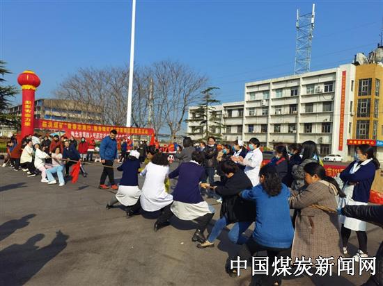 在工业广场,全矿女职工与淮北市第四人民医院的女医护人员们共同联谊,拔河、跳绳、安全对对碰等活动让大家乐个不停,甜美的笑容扬在脸上,欢快的笑声裹进了春风,女工们幸福地感受着矿上的关心关爱。