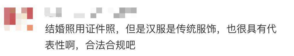对此民政局工作人员称,此前无锡没有先例,因此未予同意。工作人员表示,此前对“戏服”的表述不准确,年轻人追求个性化可以理解,后续是否会认可汉服证件照形式,还需要研究。 网友:一派支持一派反对还有人“成功”注册 面对陈先生夫妻经历的事情,网友纷纷发表意见。有网友认为:结婚还是要正式一点。