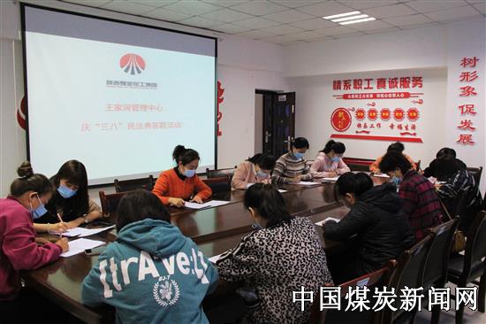 【本网讯】 3月8日,为庆祝“三八”国际劳动妇女节,为了激发广大女职工立足岗位建功立业的工作积极性,陕西铜川华远项目部王家河管理中心组织全体女职工开展“迎三八,铸法魂”民法典知识答题活动,女职工们积极参与,现场气氛热烈。