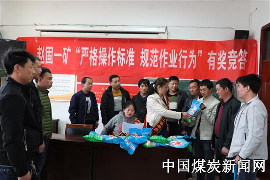 赵固一矿工会组织女工协管员开展以“严格操作标准、规范作业行为”为主题的班前“安全知识有奖竞答”活动