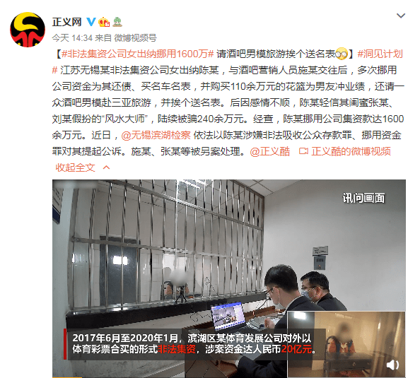 | 非法集资公司女出纳挪用1600万!请酒吧男模旅游挨个送名表 | |||