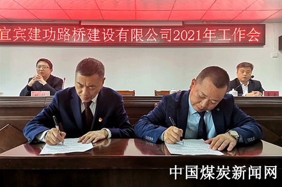 会议表彰先进个人10名、优秀中干2名、优秀项目经理2名。党总书记、董事长邓永强与兴文项目公司、帝羽劳务、欣路机料三家子公司签订2021年经营目标责任书。
