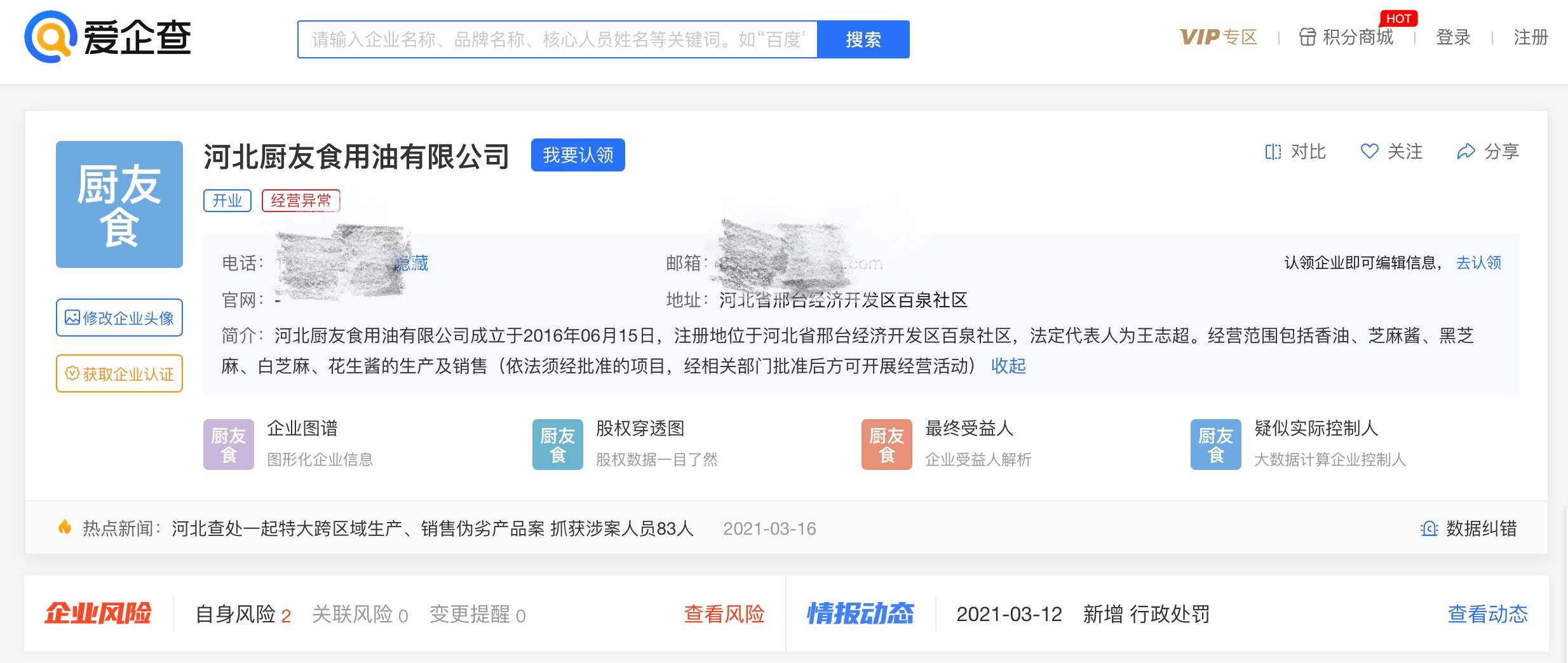 河北一家公司生产的芝麻香油,价格远低于市场价,背后有何猫腻? 市场监管总局21日公布了一起生产销售伪劣香油案,揭开了香油行业部分不良企业掺假潜规则,令人警惕和深思。“新华视点”记者围绕案件侦破、查处进行了采访。 接群众举报,执法人员秘密取样 2019年初,河北省邢台市市场监管局接到群众举报,河北厨友食用油有限公司生产的芝麻香油、芝麻酱等产品存在掺假行为。市场调查发现,该公司销售的厨友牌香油仅为18元/斤,远低于25元/斤的市场价格。粗略统计,该公司的年销售额超过800万元。 2019年4月,邢台市市场监管局执法人员对河北厨友食用油有限公司生产经营8批次的芝麻香油、芝麻酱进行了秘密取样,检验发现,多批次芝麻香油的脂肪酸组成成分不合格,芝麻酱中检出花生成分,且黄曲霉素超标。