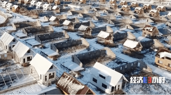 在现场记者注意到,这里除了已经竣工的木屋院落,还有不少像是停工的木屋、大棚。此外还有数个被拆除、放置于地面的屋顶。