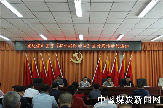 【本网讯】2021年4月25日-5月1日,是第19个《职业病防治法》宣传周,为压实矿井主体责任落实和切实维护干部职工职业健康,4月26日,古叙煤田公司宏达煤矿组织召开了宣传周工作落实专题部署会。