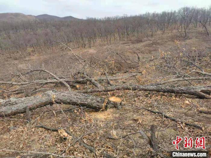图为现场被锯断的树木。 赵忠良 摄 中新网呼伦贝尔5月13日电 (记者 张林虎)光天化日之下,两人竟然雇佣工人伐木200多亩。13日,记者从内蒙古自治区呼伦贝尔市阿荣旗公安局获悉,两名涉事人员已被采取刑事强制措施。 2021年3月22日,阿荣旗公安局森林公安分局接到举报称:音河乡新建村线杆沟组东山附近有人砍伐林木,大约有二三百亩。 涉及到如此大面积的林木被砍伐,音河派出所民警在当地林业站的配合下对举报地点进行了定位。确定现场有人作案后,为避免打草惊蛇,民警乔装打扮赶赴现场。 到达现场后,民警看见有的工人正在整理树木,还有的正在伐木,现场有大量被伐倒的树木和伐根。民警亮明身份后,立即对现场和工人进行管控。 民警对工人询问后得知,他们都是被雇佣人员,雇主并不在现场,几人也是受到蒙骗,并不知道雇主没有办理采伐手续。