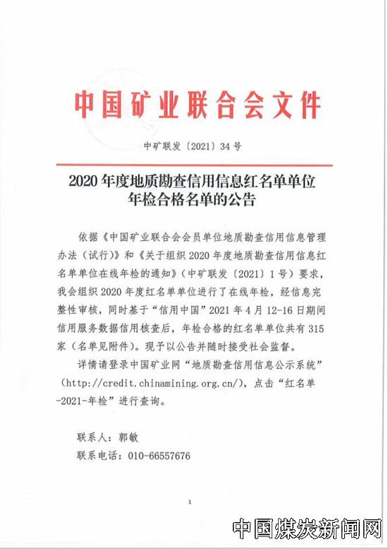 【本网讯】近日,从中国矿业联合会公布的《2020年度地质勘查信用信息红名单单位年检合格名单的公告》获悉,山东省煤田地质局第三勘探队荣列其中,顺利通过年度信用信息年检。