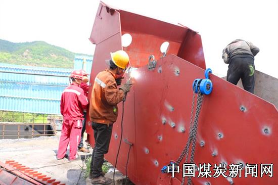 该矿洗选区排矸车间的立轮排矸机是地面原煤运输过程中原煤与矸石分离的重要设备。经长期服役设备出现磨损、分选精度降低。为保障地面运输系统的安全高效运行,矿井提早谋划,组织技术骨干现场勘察,认真研究制定施工方案,经公司相关部门批准后,利用停产检修时间对设备部件进行更换。 立轮排矸机体积大、重达12t,从拆卸、吊运到安装调试,给施工带来极大挑战。在安装更换摇臂过程中,要先拆除旧摇臂极其附件、弧形板、提升轮等需要更换的部件,再将新提升轮的弧形板及新摇臂极其附件安装在槽体上。受场地空间限制,拆除的旧件需要运出厂房后,再进行新部件的安装更换。设备进出施工作业区困难,安装精度要求高,立轮无法进入排矸车间作业区,矿分管领导及相关部门专业技术人员与施工方积极对接,研究探讨、相互配合,提前打通排矸车间侧墙,清除障碍物,改进吊装方案,作业现场调整倾斜角度,在双方的共同努力下,这个庞然大物顺利运输至安装位置,大大提高了施工效率。