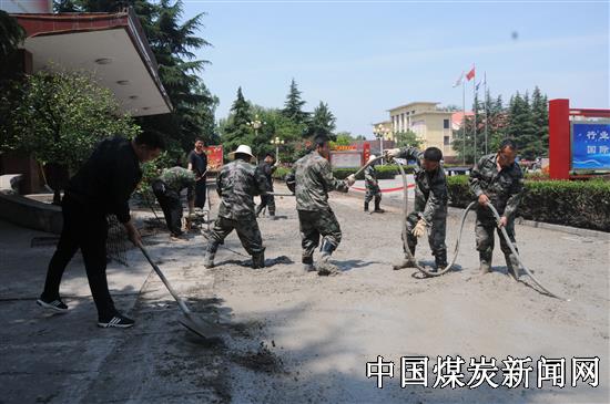 【本网讯】 “弟兄们,今天的主要任务是要把300平方商砼快速铺完,希望大家加把劲,矿上能把这项工作交给我们,是对我们工作的信任,我们要尽快完成这项工作。”5月16日,正在河南能源鹤煤八矿矿工路修路的该矿武保科科长董银召对修路的队员说。