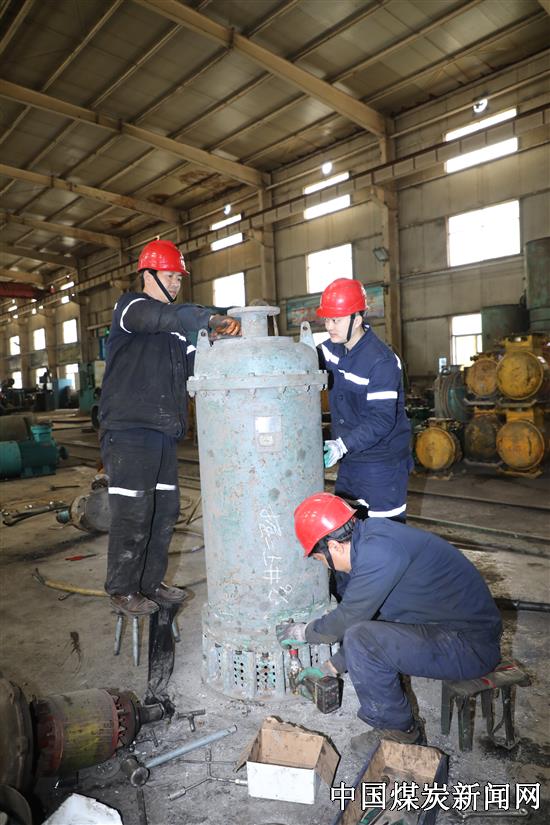 赵固一矿职工在修复潜水泵