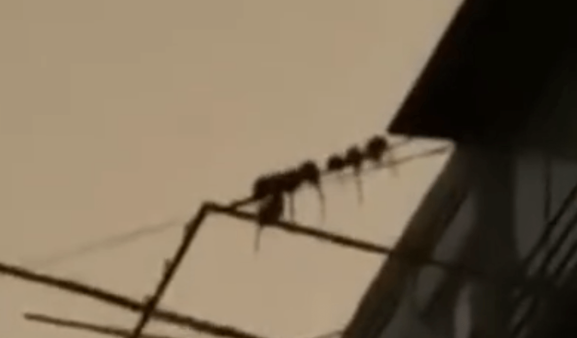 老鼠在晾衣架上“开会”。 图片来自网络 孙先生说,虽然居委会已于5月11日带人消杀过独居老人的房间,清理出成车的垃圾,楼道异味也减了不少,但依旧有老鼠活跃。到了晚上六七点,就有居民在楼下围观老鼠“开会”——多只老鼠顺着阳台的晾衣杆爬出聚集。