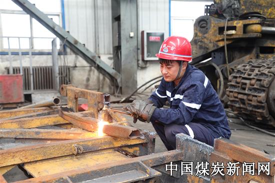 【本网讯】河南能源焦煤集团赵固一矿为做好降低生产成本、节能降耗工作,积极在废旧物资中寻找“剩余价值”,为企业节约了大量的材料支出费用。图为5月31日,维修人员在利用旧料加工皮带支架。