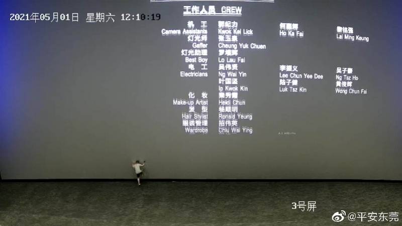 东莞市公安局5月3日通报,5月1日12时37分许,塘厦公安分局接到塘厦镇某影城工作人员报警,称影院影幕被一名儿童拍打、脚踢,导致损坏。