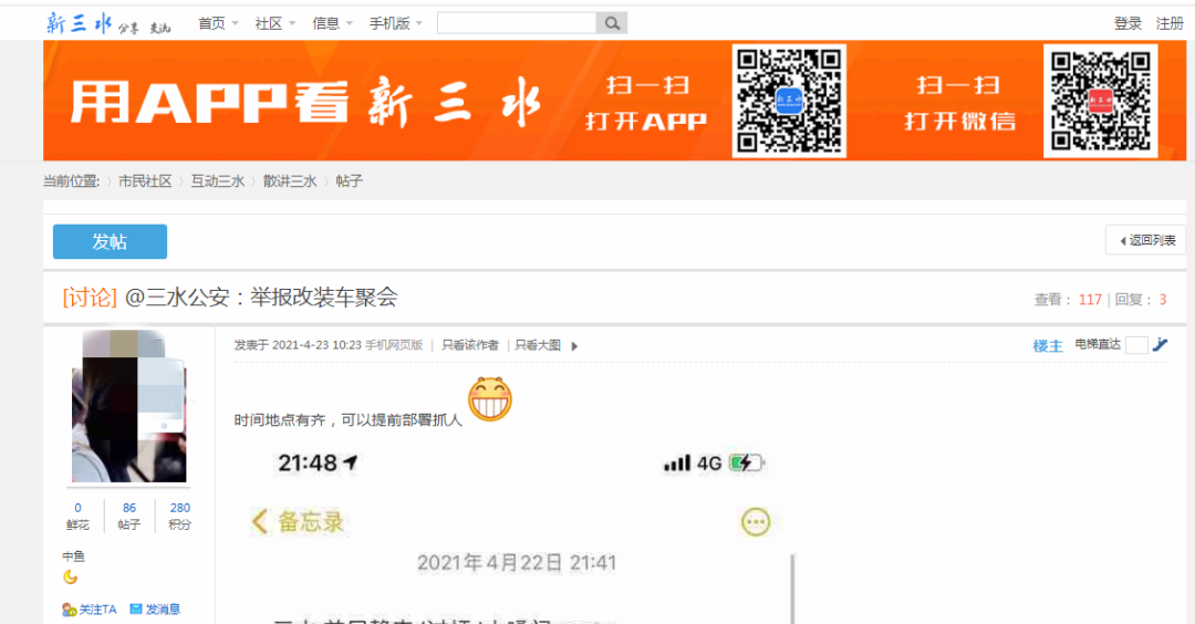 除此以外,还有网友发帖上传图片举报改装车聚会。
