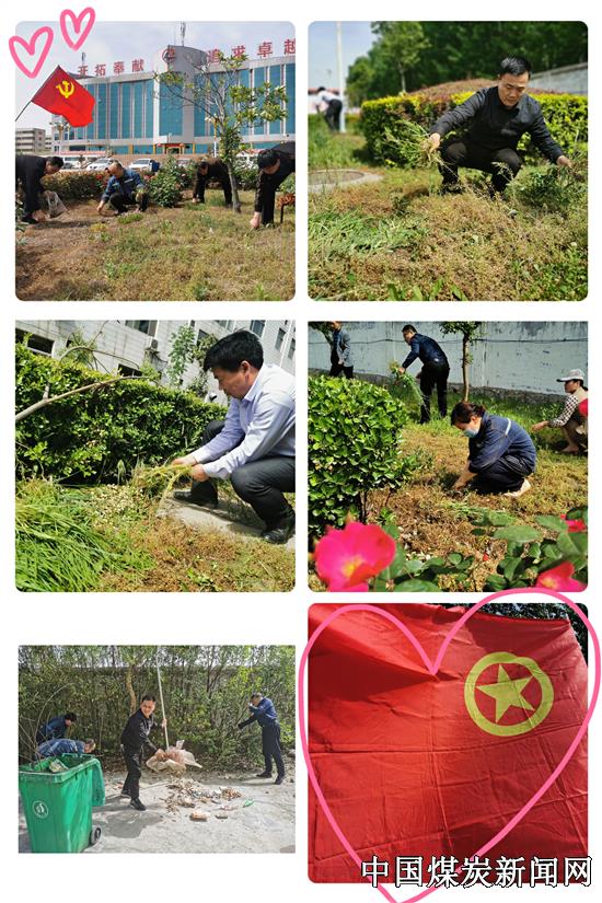 鲜艳的党旗迎风飘扬,跃动的团旗随风舞动。会后,党员和青年团员在矿区花坛边集结,在党旗和团旗下开展了卫生清理志愿服务活动。立夏已至,万物并秀。党员团员,齐头并进。大家分工协作,各自发挥优势,有的清除杂草,有的倾倒垃圾,有的铲除淤泥,干劲十足,热火朝天。共青团员朝气蓬勃,活力四射,勇当生力军;共产党员首当其冲,带头引领,争当主力军。夏日艳阳高照,照在洋溢微笑的脸上,照在汗珠晶莹的头上,照在党员团员的心窝上。经过大家的共同努力,矿区花坛井然有序,鲜花争相开放,路面干净整齐。