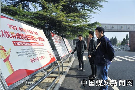 安徽淮北朔石矿业职工观看党史展板 传承红色精神