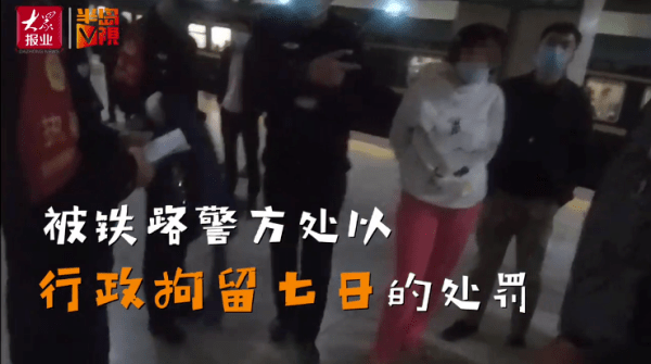 “腿不好是怎么上车的?” 民警一个反问 豪横女彻底急眼了: “曝光就曝光,只要不脱光” 多次警告无效 列车到达徐州站时 乘警将李某移交至 徐州站派出所处理 李某因霸座行为 扰乱列车秩序 被行政拘留七日