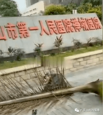 5月5日下午,在广东佛山禅城区南庄解放路第一人民医院禅城医院门前,发生了意想不到的一幕!一棵种植在人行道边的近十米高的大王椰树上,几十斤重的干枯树叶突然从天而降,刚好就砸到了一名路过男子的身上
