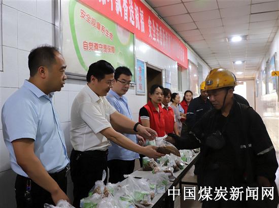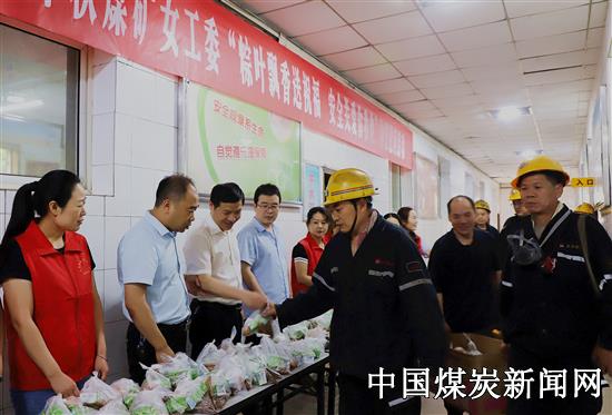 这一幕场景,正是6月12日,河南能源义煤公司千秋煤矿在“端午节”来临之际,组织该矿女工委及协管员们,深入井口开展的浓情“蜜”语慰问送祝福活动。活动现场上,该矿领导班子及女工协管员将精心准备好的蜜语粽子、爱心鸡蛋、暖胃酸奶等慰问品,亲手送到每一位职工们手上,向他们表达节日的祝福。同时,不忘叮嘱职工们要牢记安全、坚守“红线”,按章操作,做到高高兴兴上班,平平安安回家。