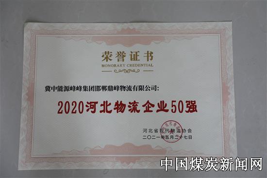 | 峰峰集团鼎峰物流公司荣膺“2020年河北省物流企业50强”荣誉称号 | |||
