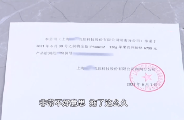 因此,给小范买手机需要走公司请款流程,但是在申请的过程中并不太顺利,所以小范的奖品才会拖了这么久。对于公司的做法,小范提出了质疑,表示公司在开空头支票,应该是不想给他手机。 经过记者协同沟通,负责人和公司总部进行了沟通,总部也作出了回应,称将在6月底之前给小范落实到位。对于这次承诺,记者给小范提了个醒,能否让公司开具一个纸质协议,盖上公司公章,公司行政表示可以,给小范开具了一张盖有公章的“支票”。
