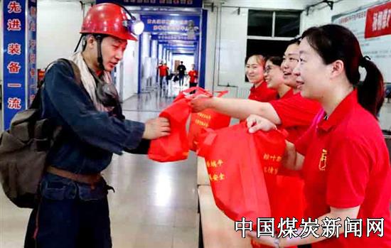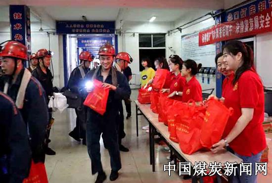 【本网讯】6月14日,安徽淮北矿业集团杨柳煤矿工会组织妇女协安员一大早来到井口给上下井的职工送去粽子,苹果及一声声安全嘱托。