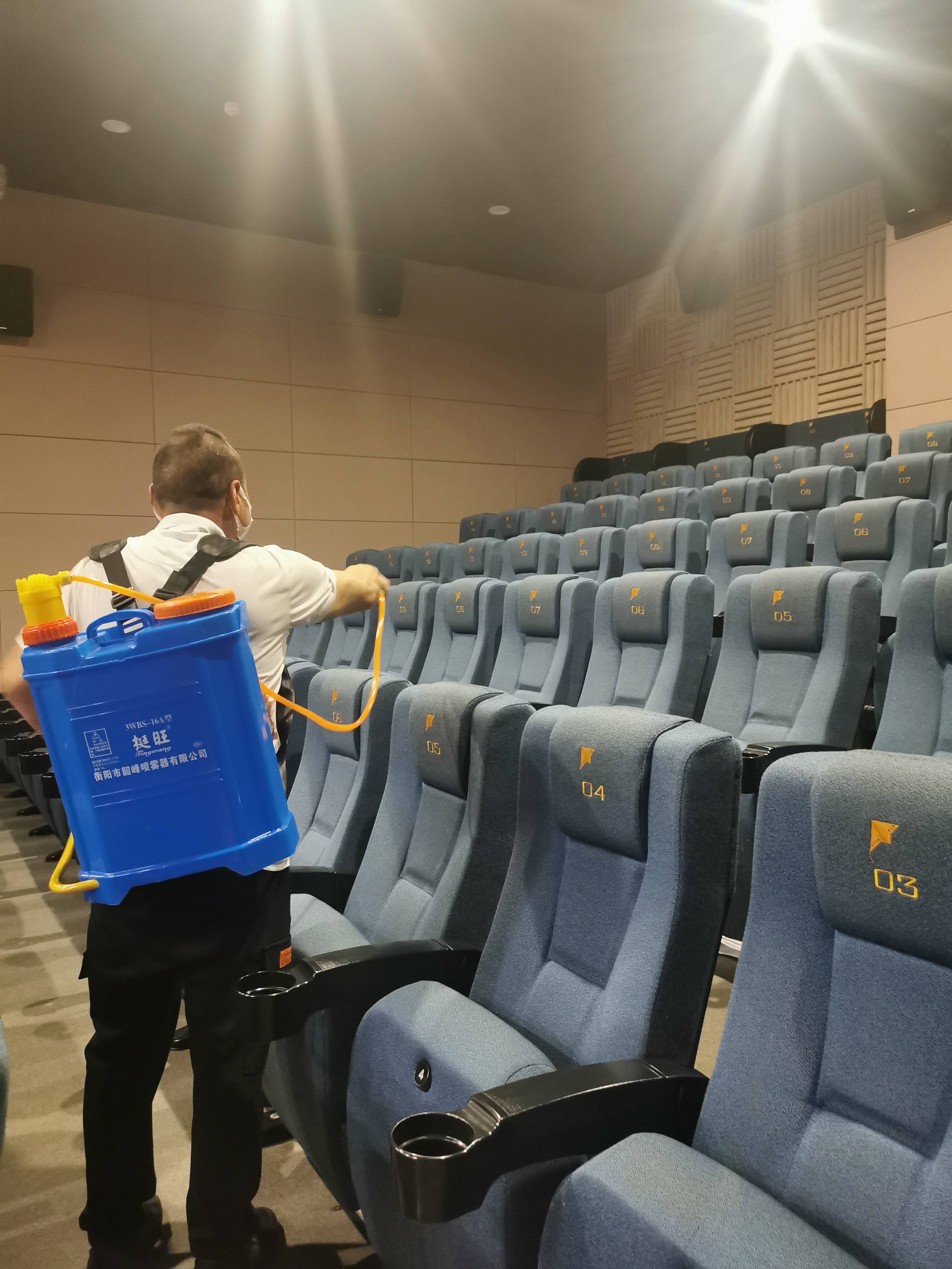某影厅员工在散场后进行消毒。 个别观众的奇葩行为,对影院伤害很大 新京报记者走访了十多位院线经理,他们表示破坏座椅、大声喧哗、摄屏等不文明的环境情况基本每个影院都会遇到,这些行为对影院伤害很大。从一个影院一年大概接待30万人到50万人来说,素质比较高的客人还是占据绝大多数,但也会存在一些不太良好的观影行为,包括,每个影院也有分类的垃圾桶,但很少有客人愿意去分;饮料倒在地上,有些观众甚至在观影中吃麻辣烫、水果,将影院当成“野餐场地”,李玉霖笑说,几乎每个影院都找得到被粘了口香糖的座椅。 被问到最近两起孩子破坏银幕的看法,不仅是业内人士,很多普通的观众都表达了愤怒。“家长方责备影院没有提醒,但影院方是没有条件去做围栏挡隔银幕的,因为影院不像动物园和演唱会,从光线,疏散、放映各方面来说都没有办法做栏杆。另外,指责说影院的巡查工作没有做足够,因为没有及时巡查到这个情况,现在影院确实没有办法给每个厅配备一个人24小时盯着,影院提醒不到位有一定责任,但对于家长来讲,更多是他们对这件事的意识。”李维逊说,洛阳这一起破坏银幕案例,家长在这方面的处理方式也反映出社会上一部分人的看法,他们没有意识到这个问题。票房分析师罗天文告诉记者:“家长的这种做法也会给孩子作出不好的教育,不仅仅是一块银幕,如果家长都不觉得这个是错的,对于孩子去破坏公共财物不进行约束,(也说明)这些家长并不具备约束管教孩子的能力,从这件事情上来说,主要还是呼吁家长的社会责任感要加强,对孩子的教育,不仅仅是分数,文明教育还是需要提高一些。” 广州一家影院工作人员对记者说,优秀的观众占绝大多数,但也有一些奇葩的观众,比如: