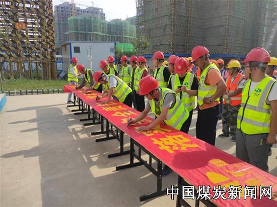 活动中,项目经理作动员讲话并带领大家进行集体宣誓;项目部全体人员在宣传横幅上郑重签字,牢记安全生产责任。