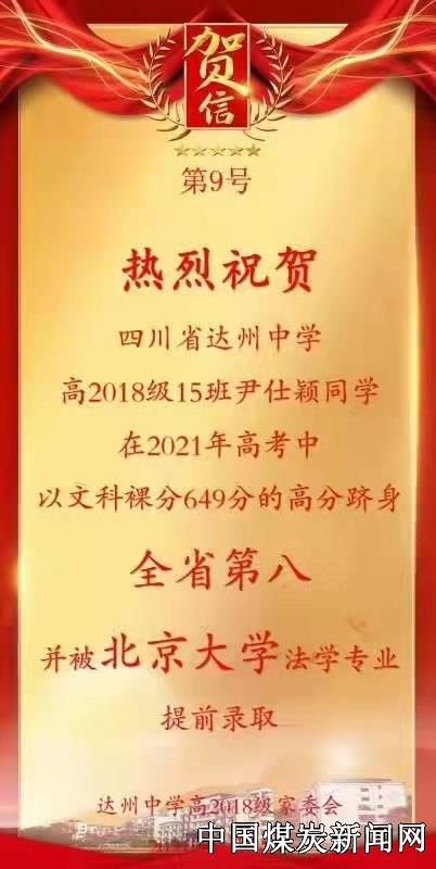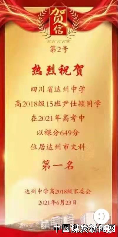 【本网讯】“尹仕颖,以649分荣获2021年达州市文科状元,是我们小学6年的同学,他是我们的骄傲,超级棒!热烈祝贺尹仕颖被清华大学法学系提前录取……”就读于达川四中今年参加高考取得568分的唐佳香和同学们在“斌郎矿山2018级”微信群兴致勃勃的畅聊。