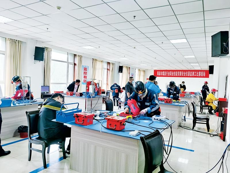 参加安全仪器监测工竞赛的选手正在按照规定流程进行操作。 6月10日一大早,上社煤矿负责技能竞赛比武的工作人员就开始忙碌起来,有的忙着调配人员,有的组织大家梳理流程,还有的盯控防疫物资的准备情况……大赛工作人员在严细实上下足功夫,开赛前的各项准备工作都在有条不紊地进行当中。 在上社煤矿的职工教育培训中心入口处,一张条形桌摆放在显眼位置,桌子上的免洗洗手液等消杀用品整齐地摆放着,4名戴着口罩的工作人员分工明确,对所有进入大厅的人员进行登记、测量体温、查验行程码和健康码,同时拍照留底。一位正在引导参赛人员进行登记的工作人员说:“做好疫情防控工作对于大赛来说非常重要,我们每个人都会严格遵守相关要求开展工作,把控好每个细小的环节。” 在为期两天的竞赛中,全市煤炭系统的17家企业(单位)、228名参赛选手开展5个工种的职业技能大比拼。这些平日里忙碌在生产一线的工人师傅通过技能竞赛的舞台,将工作岗位的风采和绝活展示给大家,并与同行切磋技艺,交流经验,共同进步。 作为大赛组委会的重要成员,上社煤矿工会主席朱晋武在做好日常工作的同时,尽心尽力做好大赛的组织和协调工作。笔试考场、实操现场、候考区……每一个重要区域,都能看到他忙碌的身影。 朱晋武一边叮嘱工作人员要注意防控措施的落实,一边嘱咐参赛人员要沉着应战。他说:“职业技能竞赛的举行就是为了给职工创造一个切磋技艺的平台,鼓励和激励他们大力弘扬劳动精神和工匠精神,勤于创造、勇于奋斗,逐渐成长为行家里手,起到很好的传帮带作用,助力企业的高质量发展。” 为了遵循“公平、公正、公开”的原则,上社煤矿在考场的设立和参赛人员的安排上都煞费苦心。在笔试考场,写有“有理想守信念、懂技术会创新、敢担当讲奉献”字样的条幅悬挂在显眼位置,所有无纸化的操作设备全部进行了清洗消杀,考场里显得格外肃静,只能听到鼠标点击的操作声。 笔试是无纸化操作,实操比赛的现场就更具有挑战性。在安全仪器监测工的比赛现场,液晶显示的计时器放在显眼位置,不时有参赛选手抬头望向计时器。每个参赛人员都配备了一名裁判,随时对他们的操作细节进行查看,对各个环节进行打分。 安全仪器监测工竞赛的裁判长孙自强介绍,实操环节的裁判都是这一工种的佼佼者,能准确、熟练运用相关设备,对其工作原理和操作已经了然于心。整个裁判环节严谨、规范,将每个操作细节细分为多个档次进行打分,并进行详细说明。 实操环节的比拼最具看点,除了要对选手操作的规范和熟练程度进行评定,还要求参赛选手在电脑上进行相应的对接和操作。参赛选手们目不转睛地盯着操作台,对自己的每一个操作进行认真推敲,生怕有细节做得不到位,影响整个比赛。来自大阳泉煤矿的时延明第一次参加这样的竞赛,虽然作了充分准备,但是在电脑操作环节还是有些紧张。他说:“我抱着和大家学习的心态来参加比赛,希望和同行们能有更多交流,学习别人身上的优点,让自己的技术有所提高。”(冯梦琪)