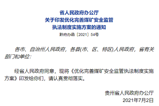 | 贵州印发优化完善煤矿安全监管执法制度实施方案 | |||