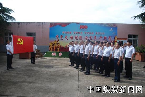 盛大的庆祝大会直播结束后,矿区党员干部来到矿办公楼门前,举起右拳,重温了入党誓词,进行了庄严宣誓。