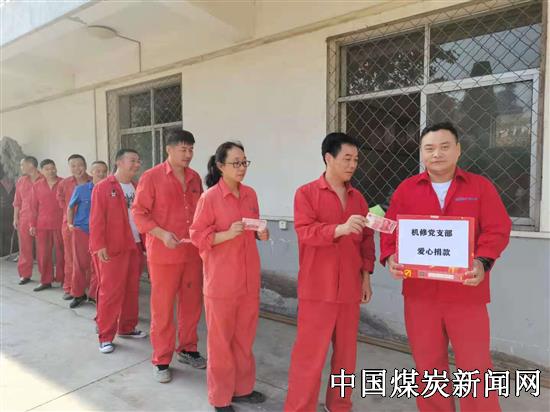 【本网讯】灾难无情,人间有爱。为全面响应党和政府号召,认真落实集团公司抢险救灾倡议活动,日前,河南能源焦煤集团千业水泥党委举办“人间有爱‘豫’你同行 ”职工在行动爱心捐款,党员干部率先垂范,职工群众踊跃捐款,大家纷纷伸出援手,为灾区人民奉献爱心。图为机修党支部人员现场捐款场景。