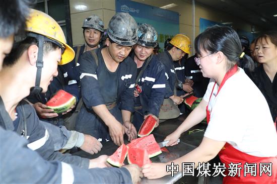 【本网讯】进入7月份,天气日益炎热。为做好防暑降温工作,保障生产一线员工的身体健康,确保平安度夏,河南能源焦煤集团赵固一矿工会开展了“关爱员工、夏送清凉”活动,激励一线职工以更加饱满的工作热情投入到安全生产中去。图为7月7日,该矿工会井口送西瓜活动现场。