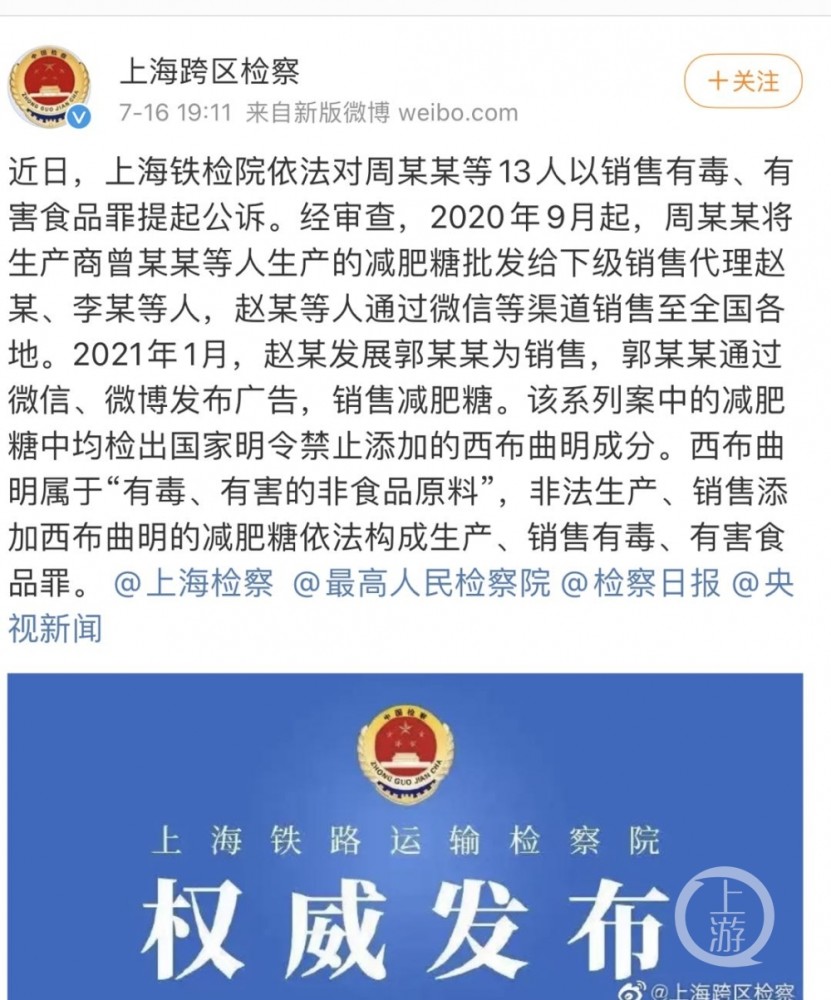 8月13日,郭美美销售有毒、有害食品一案在上海市铁路运输法院一审开庭审理。作为第二次受审的郭美美是否会被加重处罚也备受关注。 河南豫龙律师事务所付建律师对上游新闻(报料微信号:shangyounews)记者表示 :如果法院判决案件成立,根据《刑法》相关规定,郭美美符合五年内又犯罪的累犯情形,在判刑处罚上会从重处罚。 ▲7月16日,上海铁路运输检察院对郭美美提起公诉。图片来源/上海铁路运输检察院 据上游新闻此前刊发的《郭美美销售违禁减肥品案细节曝光:75人被抓,每颗成本几毛钱卖69元》等报道显示,2020年12月,上海浦东公安分局经侦支队收到线索:有人在网上销售假减肥药。经查,该产品在全国多省市进行生产销售。工厂均为家庭作坊,利用胶囊压缩机器进行生产,且包装和产品名称均可以定制。且减肥药中含有国家明确违禁药品成分西布曲明。 案发后,警方抓获涉嫌生产、销售有毒有害减肥类保健食品的嫌疑人75人,涉案金额达5000万余元。其中就包括在朋友圈销售该减肥药品的郭美美。 针对郭美美在此案中扮演的角色,7月16日上海铁路运输检察院发布消息:2020年9月起,周某某将生产商曾某某等人生产的减肥糖批发给下级销售代理赵某、李某等人,赵某等人通过微信等渠道销售至全国各地。2021年1月,赵某发展郭美美为销售,郭美美通过微信、微博发布广告,销售减肥糖。 8月13日,此案在上海铁路运输法院开庭,这也是郭美美第二次受审。此前,郭美美曾因开设赌场罪获刑5年。 作为第二次犯法的郭美美,是否会被加重处罚,备受关注。 ▲3月9日,郭美美被抓前最后一次在微博上晒自拍图。图片来源/郭美美微博 对此河南豫龙律师事务所付建律师认为:销售含有违禁品的减肥产品,已经构成犯罪,根据我国《刑法》相关规定生产、销售有毒、有害食品没有产生严重后果的会被处以五年以下有期徒刑,产生严重后果的,最高可能会被判处死刑。 而郭美美之前曾因为开设赌场罪被判刑,刑期至2019年7月13日,在结束服刑五年内,郭美美又因为生产、销售有毒、有害食品而被捕,如果法院判决案件成立,根据我国《刑法》相关规定,郭美美符合五年内又犯罪的累犯情形,在判刑处罚上会从重处罚。 上午11点30分,庭审结束,该案将择期宣判。