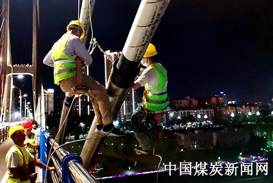 【本网讯】8月17日凌晨00:00点,宜宾长江第一桥随着夜深渐渐安静,桥上走来了一群身着工装的施工队伍,他们按照规定的工作流程,套牢安全绳索后,在地面安全人员的指挥下又开始了这一夜的灯具“变身”工作。这是宜宾路桥长江桥亮化维修项目部今年6月20日进场以来,每夜重复开展的工作内容。