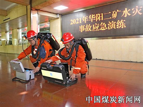 华阳二矿进行水灾事故应急演练