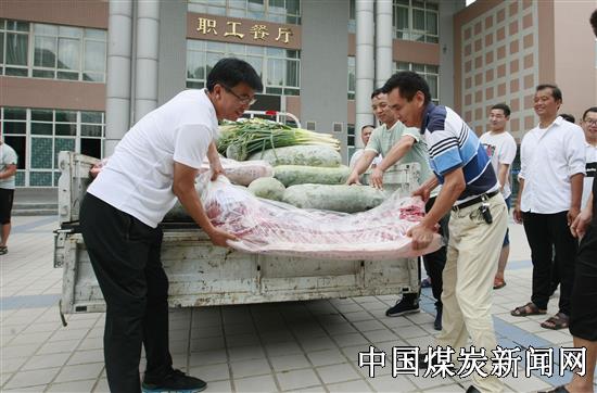 【本网讯】7月28日上午,赵固二矿原总工程师、现河南理工大学土木工程学院教授陈新明,在听闻河南能源焦煤公司赵固二矿受灾情况后,立即采购大米3000斤、食用油40桶、冬瓜500斤、大葱100斤、生猪一头等物资,驱车百里送至赵固二矿,为赵固二矿广大职工送来了温暖,解了燃眉之急,助力赵固二矿灾后重建,早日恢复正常生产。