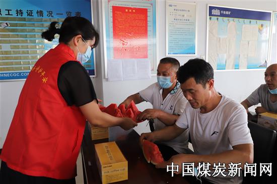 【本网讯】“谁最辛苦?是咱们的女工协管们,外面35℃的高温天气,协管员们顾不上休息的时间,还要赶来给咱们矿工兄弟们送清凉,吃着甜脆的西瓜,可不能忘记女工协管们的辛劳和‘安全第一’的叮嘱啊………。”这是一幕发生在河南能源义煤公司千秋煤矿职工公寓楼掘进二队班前会的场景。
