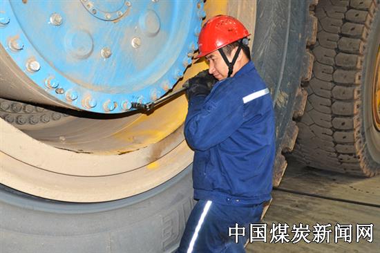 【本网讯】近日,为强化设备出动率,国家能源准能集团设备维修中心严格落实岗位生产责任制,不断优化管控措施,细化责任分工、明确安全生产责任、严格考核兑现,多举措保证设备出动率。图为该中心职工正在检查矿用卡车电动轮润滑油。