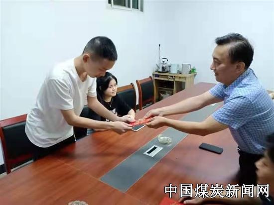 图为8月28日,公司领导代表工会到属下龙塘煤矿为考上大学莘莘学子送上“金秋助学”慰问金,并寄语学子们努力学习,学有所成,报效祖国,感恩企业。