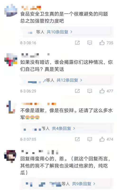 对于“奈雪的茶”在微博上的公开回复,有部分网友并不买账,表示“奈雪的茶”的致歉信全程只是在撇清关系,认错态度不端正。也有网友表示,标签不实这一行为仅与员工个人有关,公司能在私下进行通报处罚,已经算管控严格的良心店家了。但大部分网友仍然希望“奈雪的茶”能够加强食品安全管控,不要辜负消费者对奈雪的信任。
