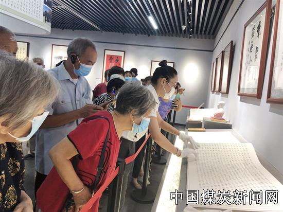 党史学习教育成果墙前,映入眼帘的是一幅幅矿区职工用实际行动践行党史学习教育的生动照片和一篇篇认真撰写的学习体会以及党史学习教育开展以来涌现出的典型案例。让大家切身感受到党史学习教育的成果转化。一楼大厅展出的见证公司发展的一件件“老物件”,勾起在场离退休党员对自己扎身矿井奋斗青春的回忆。大家纷纷感叹岁月如梭,指着老物件讲述自己经历的煤矿建设发展历史。省劳模秦卜儒同志还激动地在自己获奖证书展台前合影留念,以纪念自己曾经砥砺奋进的激情岁月。雷锋精神展台前,解说员特别讲解了南桥小区“五人帮扶组”的现代雷锋精神传承实例,引发在场老同志的一致共鸣。二楼,党史学习教育书画展勾起书画爱好者的浓厚兴趣,大家驻足观看,欣赏评鉴,留恋驻足,久久不愿离去。